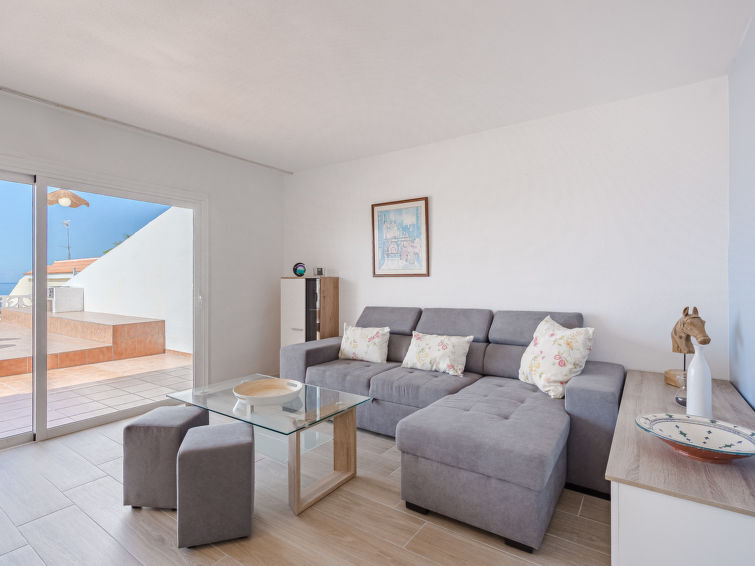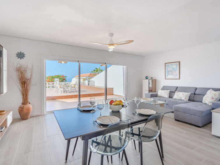 "Terraza de los Gigantes", apt 3 pièces 72 m2. Logement idéal pour 4 adultes. Spacieux et clair, aménagement fonctionnel et confortable: séjour/salle à manger avec Télévision numérique, chaînes de TV internationales, écran plat et ventilateur. Sortie sur la terrasse. 2 chambres, chaque chambre avec: 2 lits (90 cm, longueur 190 cm), ventilateur. Cuisine ouverte (four, lave-vaisselle, 3 plaques à induction, grille-pain, bouilloire électrique, micro-ondes, congélateur, cafetière électrique, Capsules pour machine à café (Nespresso) (NON INCLUSES)). Douche/WC. Chauffe eau (50 litres). Pas de chauffage. Grande terrasse 45 m2, petit jardin. Meubles de terrasse, barbecue. Vue sur la mer et la localité. A disposition: lave-linge, fer à repasser, sèche-cheveux. Internet (Connexion WIFI, gratuit). Veuillez noter: adapté(e) aux familles. Logement non-fumeur. Sans ascenseur. VV-38-4-0110927 // Reg. Nr.: ESFCTU0000380020002826870000000000000VV-38-4-01109270,