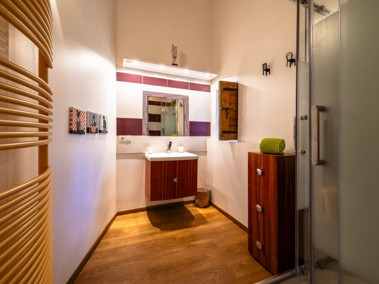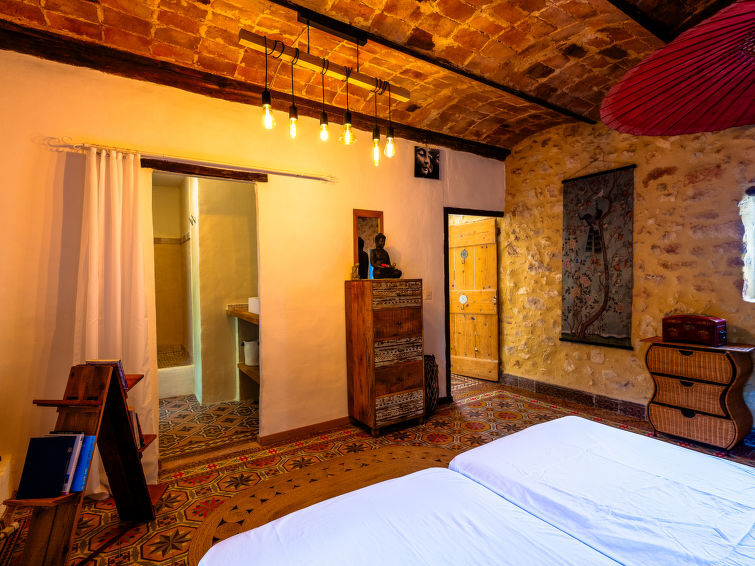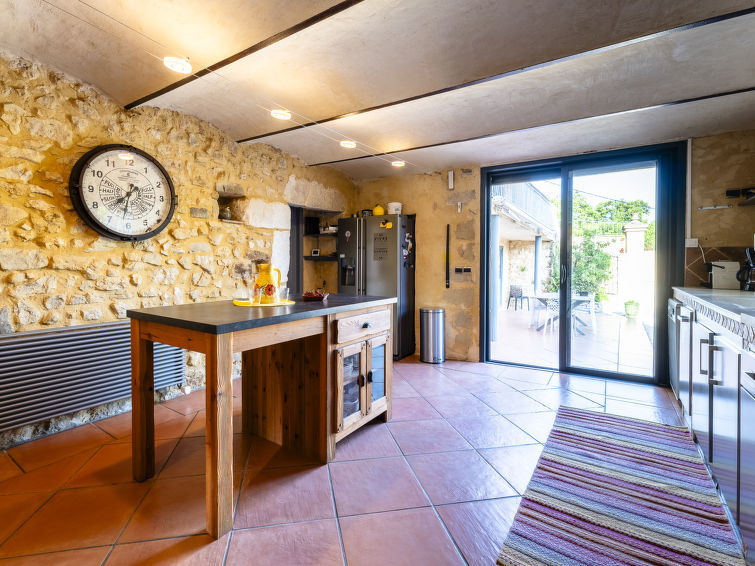 "Le Mas d'Adélaïs", ancienne ferme 7 pièces 300 m2 sur 2 niveaux. Spacieux, complètement rénovée, aménagement confortable: séjour/salle à manger avec poêle suédois et TV (satellite) (écran plat), chaîne stéréo, DVD et air-conditionné. Sortie sur la terrasse. 1 chambre avec 1 grand-lit (1 x 160 cm, longueur 200 cm), douche/WC et ventilateur. Grande cuisine dans l'entrée (four, lave-vaisselle, 3 plaques à induction, grille-pain, bouilloire électrique, micro-ondes, congélateur, cafetière électrique, appareil à raclette, service à fondue (fondue au fromage)). Sortie sur la terrasse. 2 WC séparés. Chauffage électrique. À l'étage supérieur: 1 chambre avec 1 grand-lit (1 x 180 cm, longueur 200 cm), lavabo, bain/douche et ventilateur. 1 chambre avec 2 lits (90 cm, longueur 200 cm), lavabo, douche et ventilateur. 1 chambre avec 2 lits (90 cm, longueur 200 cm), lavabo et douche/WC. 1 chambre avec 1 grand-lit (1 x 160 cm, longueur 200 cm), lavabo, douche/WC et ventilateur. WC séparé. Grande terrasse 15 m2, petite terrasse 8 m2. Meubles de terrasse, barbecue, chaises longues (8). A disposition: lave-linge, fer à repasser, lit bébé jusqu'à 2 ans. Internet (Connexion WIFI, gratuit). Place de parking (cloturée, 3 Voitures). Veuillez noter: maximum 2 animaux/chiens de petite taille autorisés. Détecteur de fumée. La piscine mentionnée dans le descriptif est privative. Annonce d'un particulier (art 155, IV du CGI).