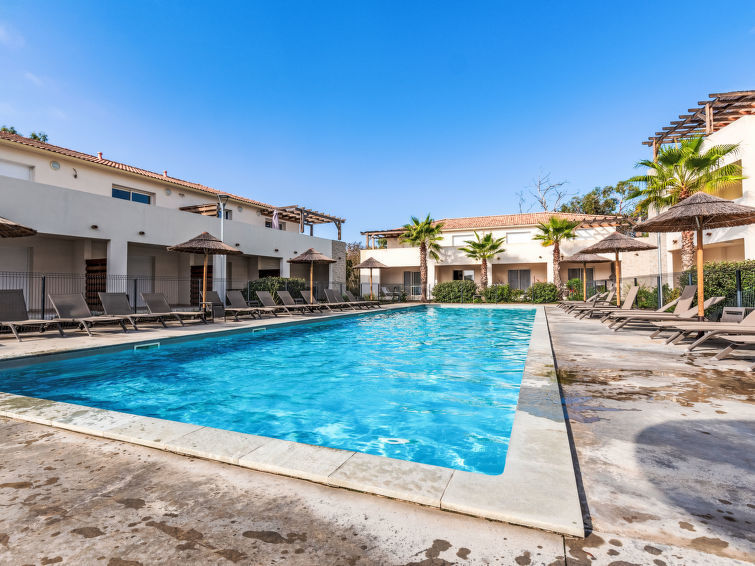 Bravone: Residentie "Marina Di Bravone". 80 m van zee, 80 m van het strand, directe toegang tot het strand. Voor medegebruik: openluchtzwembad verwarmd (20 x 6 m, 150 cm diepte, seizoensgebonden beschikbaarheid: 15.Apr. - 30.Okt.). Buitendouche. In het complex: wasmachine, droger (voor medegebruik, extra). Parkeerplaats. Levensmiddelenwinkel 2.2 km, supermarkt 9 km, restaurant 2 km, bushalte 2.7 km, zandstrand "Bravone" 80 m, duikschool 6 km. Jachthaven 18 km, manege 3 km. Attracties in de buurt: Marché Bravone (jeudi) 1.8 km. Auto noodzakelijk.
