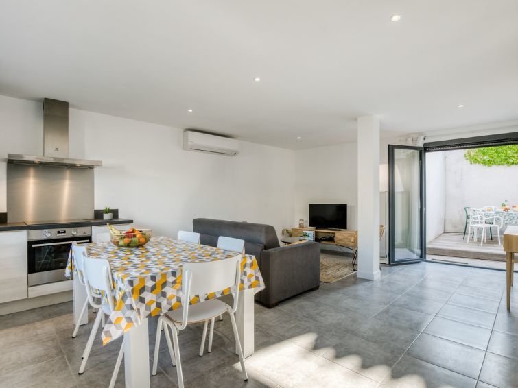 Huis in een rij 4-kamers 94 m2 op 2 verdiepingen. Het objekt is geschikt voor 6 volwassenen. Modern en gezellig ingericht: woon-/eetkamer met TV. 1 kamer met 1 2-pers bed (1 x 160 cm, lengte 200 cm). Uitgang naar het terras. 1 kamer met 1 2-pers bed (1 x 160 cm, lengte 200 cm). Open keuken (oven, afwasmachine, 4 keramische glas kookplaten, broodrooster, waterkoker, magnetron, elektrische koffiemachine, pads voor de koffiemachine (Nespresso) extra) met air-conditioning. Douche, aparte WC. Bovenverdieping: 1 kamer met 1 2-pers bed (1 x 160 cm, lengte 200 cm), air-conditioning. Uitgang naar het balkon. Douche/WC. Elektrische verwarming, air-conditioning. Balkon 12 m2, 2 terrassen 45 m2. Terrasmeubelen, barbecue. Ter beschikking: wasmachine, droger. Internet (WiFi, gratis). Parkeerplaats bij het huis. Niet rokers woning. Rookmelders. 2A13900019265