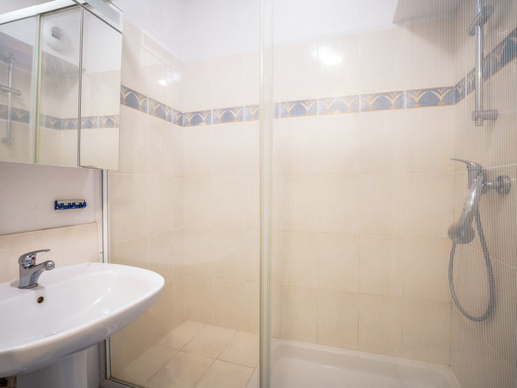 Appartement 3-kamers 44 m2 op de 3e verdieping, op het noordoosten gelegen. Woon-/eetkamer met TV (Flatscreen TV). Uitgang naar het balkon. 1 kamer met 1 2-pers bed (160 cm, lengte 190 cm). Uitgang naar het balkon. 1 kamer met afgeschuinde daken met 1 2-pers bed (140 cm, lengte 190 cm). Kookhoek (mini-oven, afwasmachine, 4 inductiekookplaten, broodrooster, waterkoker, magnetron, elektrische koffiemachine). Douche/WC. Elektrische verwarming, boiler. 2 balkons 2 m2. Uitzicht in de verte op zee. Ter beschikking: kinderbed tot 2 jaar. Internet (Internet (WiFi), extra). Rookmelders.