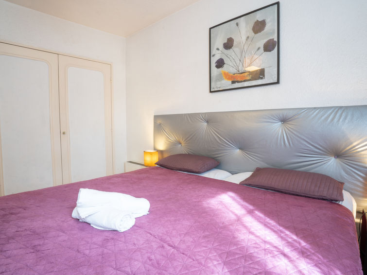 Appartement 2-kamers 46 m2, op de begane grond. Mooi ingericht: woon-/eetkamer met panoramavenster met 1 2-pers divanbed (160 cm, lengte 190 cm), TV (Flatscreen TV), DVD. Uitgang naar het terras. 1 kamer met 2 bedden (90 cm, lengte 190 cm). Kleine keuken (oven, afwasmachine, 2 inductiekookplaten, broodrooster, waterkoker, magnetron, elektrische koffiemachine). Badkamer, aparte WC. Elektrische verwarming. Terras 15 m2, zithoek in de tuin 15 m2, op het zuiden gelegen. Terrasmeubelen. Ter beschikking: wasmachine. Internet (Internet (WiFi), gratis). Parkeerplaats nr. 24. 1 klein huisdier/hond toegestaan. TV alleen FR. Rookmelders. 13028000478SW
