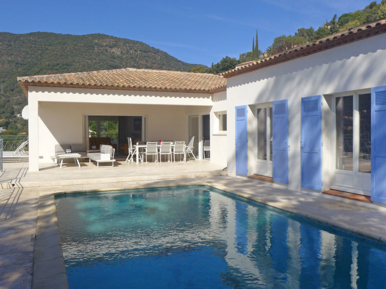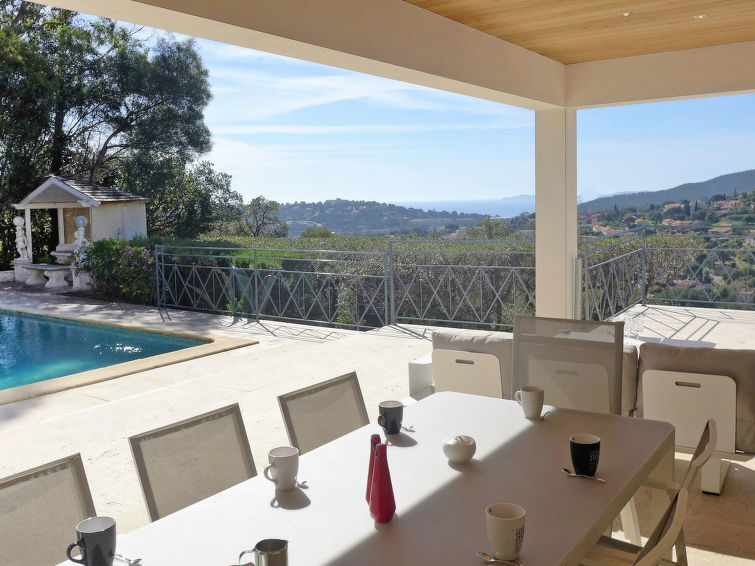 Villa "Belle Vue". Aan de rand van de plaats, 1.8 km van het centrum van Cavalaire sur Mer, rustige ligging op een heuvel, 2 km van zee. Voor alleengebruik: terrein, verzorgde tuin (omheind), openluchtzwembad hoekig (8 x 4 m, 60 - 200 cm diepte, seizoensgebonden beschikbaarheid: 08.Apr. - 07.Okt.) met alarminstallatie. Buitendouche, jeu de boules, aangelegde binnentuin. Toegangsweg tot aan het huis. Parkeerplaats (voor 4 auto's) op het terrein, eigen garage. Winkel 2 km, levensmiddelenwinkel 2 km, supermarkt 2.5 km, winkelcentrum 10 km, restaurant 2 km, bar 2 km, bakkerij 2 km, café 2 km, bushalte "place du parc" 280 m, zandstrand "Tamaris" 2 km, park "Aqualand" 26 m, duikschool 2 km. Jachthaven 2 km, zeilschool 2 km, midgetgolf 12 km. Attracties in de buurt: Azur Park, Paint-ball 12 km, Bowling à Port-Grimaud 13 km, St-Tropez 17 km, Ste-Maxime 24 km. Wandelgebied Sentier du Dattier 7.6 km, Sentier du littoral 8700 km, Toulon 60 km.