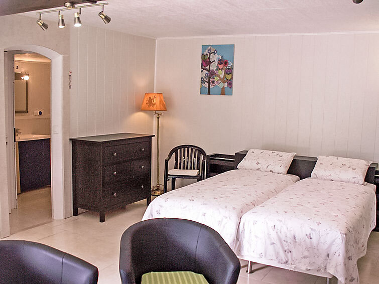 Huis 1-kamer 42 m2. Woon-/eetkamer met 2 bedden (80 cm, lengte 200 cm), eettafel en TV (Flatscreen TV). Uitgang naar het terras. Keuken (1 keramische glas kookplaat, magnetron, diepvriezer). Douche/WC. Verwarming. Ligstoelen (2). Ter beschikking: wasmachine. Internet (Internet (WiFi), gratis). Rookmelders. Let op: omkeerbare of 'reversible' airconditioning. Mogelijkheid om de 2 bedden van 80 cm te combineren.
