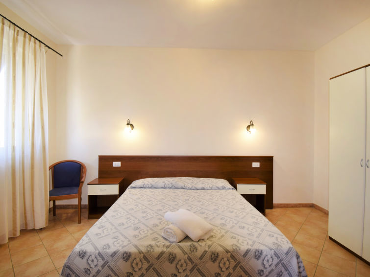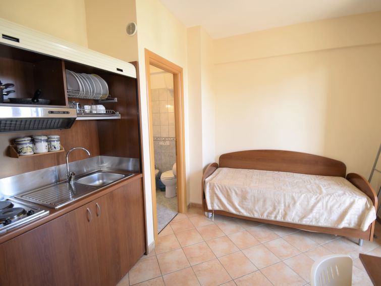Appartement 2-kamers 30 m2 op de 1e verdieping. Eenvoudig en doelmatig ingericht: woon-/eetkamer met 1 x 2 stapelbedden, TV (Flatscreen TV). Uitgang naar het balkon. 1 2-pers. kamer met air-conditioning. Kleine kookhoek (2-pits kookplaat). Douche/bidet/WC. Verwarming, heteluchtverwarming. Verwarming alleen beschikbaar van 01.12. tot 31.03. Klein balkon 3 m2. Balkonmeubilair. Ter beschikking: haardroger. Internet (Internet (WiFi), gratis). Parkeerplaats (1 Auto). Koelkast zonder vriesvak. Rookmelders, brandblusser. IT084028B45ZYBHTGH