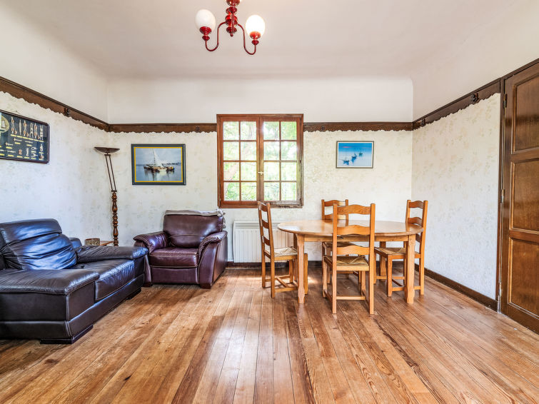 Arcachon: Eengezinswoning "La Lorraine". In de wijk Abatilles, rustige ligging, 1.4 km van zee, 1.4 km van het strand. Voor alleengebruik: terrein 490 m2 (omheind). Winkel 1.7 km, levensmiddelenwinkel, supermarkt 100 m, winkelcentrum 4.8 km, restaurant 1 km, bar 450 m, bakkerij 550 m, bushalte "Tennis Fronton" 850 m, treinstation "Arcachon" 2.6 km, zandstrand "Pereire" 1.4 km, park "Mauresque" 1.9 km, thermaalbad "Thalazur" 1.2 km. Jachthaven 5.6 km, golfterrein (18 holes) 2.1 km. Attracties in de buurt: Dune du Pyla 9.2 km, Eratopia 10 km, Observatoire Sainte Cécile 1.7 km, Marché Municipal 2.7 km, Navette Maritime pour le Cap Ferret 2.8 km, Casino 3.1 km. Bekende meren kunnen gemakkelijk worden bereikt: Lac de la Magdeleine 11.3 km, Lac de Cazaux 17 km. Auto noodzakelijk. De eigenaar accepteert geen jeugdgroepen. De sleuteloverdracht vindt plaats bij het agentschap Interhome in Arcachon, 3 km.