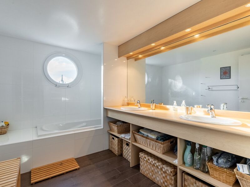 Villa 6-kamers 200 m2 op 2 verdiepingen, op het zuiden gelegen. Ruim en licht, comfortabel en modern ingericht: woon-/eetkamer met panoramavenster. Uitgang naar de tuin, naar het terras. 1 kamer met 2 bedden (90 cm, lengte 190 cm). Open keuken (oven, afwasmachine, 3 inductiekookplaten, broodrooster, waterkoker, magnetron, elektrische koffiemachine, pads voor de koffiemachine (Nespresso) extra). Badkamer, aparte WC. Bovenverdieping: 1 kamer met 1 2-pers bed (1 x 140 cm, lengte 190 cm). 1 kamer met 1 2-pers bed (1 x 140 cm, lengte 190 cm), bad/WC. 1 kamer met 2 bedden (90 cm, lengte 190 cm). 1 kamer met 1 bed (90 cm, lengte 190 cm). Douche, douche/WC, aparte WC. Geen verwarmingsmogelijkheid. Terras 40 m2, overdekt, op het zuiden gelegen en op het westen gelegen. Zeer mooi uitzicht op het bos. Ter beschikking: wasmachine, droger, kinderbed. Internet (Internet (WiFi), gratis). Parkeerplaats (1 Auto). Rookvrij huis. Rookmelders. Bedindeling is flexibel. Er zijn meer slaapmogelijkheden beschikbaar dan het maximaal toegestane aantal personen dat echter niet mag worden overschreden. Aanbod door een particulier volgens art. 155, IV van CGI.