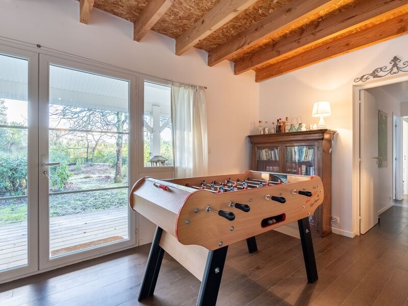 Moderne, mooi, comfortabele eengezinswoning "Hibiscus", omgeven door bomen. In de wijk Longarisse, in de plaats, 10 km van het centrum van Lacanau Océan, rustige ligging, 10 km van zee, 200 m van het meer, 200 m van het strand, in het bos, op het zuiden. Voor alleengebruik: terrein 1.200 m2. In het huis: tafelvoetbal. Parkeerplaats op het terrein. Supermarkt 10 km, restaurant 2 km, bushalte "Longarisse" 900 m, zandstrand "Lacanau Océan" 10 km, meer (zwemmen) "Moutchic" 200 m. Golfterrein (18 holes) 5 km, surfschool 10 km, zeilschool 2 km, tennis 4 km. Attracties in de buurt: Dune du Pilat 90 km, Bordeaux 60 km, Saint Emilion 98 km, Cap Ferret 48 km. Bekende meren kunnen gemakkelijk worden bereikt: Moutchic 2 km, Maubuisson 15 km. Wandelgebied Vélodyssée 5 km. Groepen jongeren uitsluitend op aanvraag. De sleuteloverdracht vindt plaats bij het agentschap Interhome in Lacanau, 6 km.