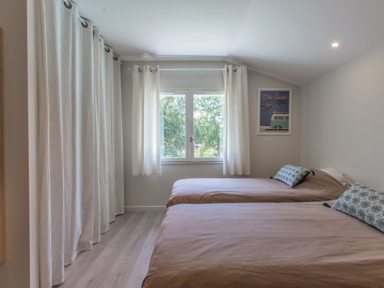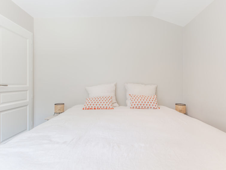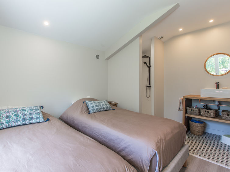 Villa 5-kamers 200 m2 op 2 verdiepingen. Ruim en licht, comfortabel en mooi ingericht: groot woon-/eetkamer 70 m2 met open haard en eettafel. Uitgang naar de tuin, naar het terras. Kleine bureau met TV (Flatscreen TV). 2 kamers, elke kamer heeft 1 2-pers bed (180 cm, lengte 200 cm). Open keuken (oven, afwasmachine, 3 inductiekookplaten, broodrooster, waterkoker, magnetron, diepvriezer, elektrische koffiemachine, pads voor de koffiemachine (Nespresso) extra) met eettafel. Bad/douche, aparte WC, dubbele wastafels. Bovenverdieping: 2 kamers, elke kamer heeft 2 bedden (90 cm, lengte 200 cm), wastafel en douche. Groot galerij. Uitgang naar het balkon. Aparte WC. Verwarming, air-conditioning. 2 balkons, op het zuidwesten gelegen en op het noordoosten gelegen, 2 terrassen gedeeltelijk overdekt, op het zuidwesten gelegen en op het noordoosten gelegen. Terrasmeubelen, barbecue (verrijdbaar), ligstoelen (8). Mooi uitzicht op het meer, het zwembad en het bos. Ter beschikking: wasmachine, droger, strijkijzer, kinderstoel, kinderbed, haardroger. Internet (Internet (WiFi), gratis). Rookvrij huis. Rookmelders. In plaats van een afgesloten slaapkamer bevinden sommige slaapgedeeltes zich in een open ruimte (galerij, nis, etc.). Aanbod door een particulier volgens art. 155, IV van CGI.