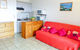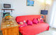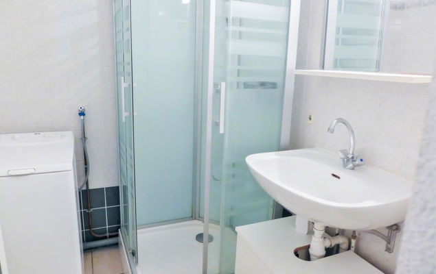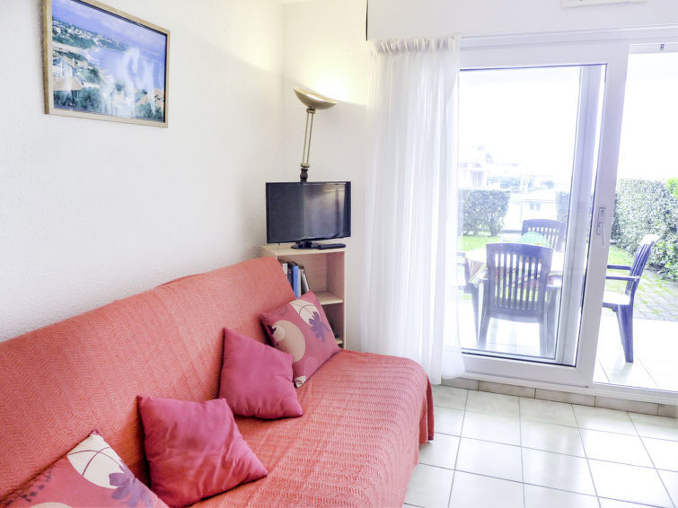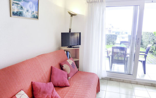 Appartement 1-kamer 29 m2, op de begane grond. Eenvoudig en mooi ingericht: woon-/eetkamer met 1 opklapbed (140 cm, lengte 190 cm), TV (Flatscreen TV). Uitgang naar het terras. Cabine met 1 x 2 stapelbedden (90 cm, lengte 190 cm). Open keuken (mini-oven, 2 keramische glas kookplaten, magnetron, elektrische koffiemachine). Douche, aparte WC. Elektrische verwarming. Terras 8 m2, op het westen gelegen, zithoek in de tuin 25 m2. Terrasmeubelen. Ter beschikking: wasmachine, strijkijzer, haardroger. Parkeerplaats nr. 125. 6412500150719