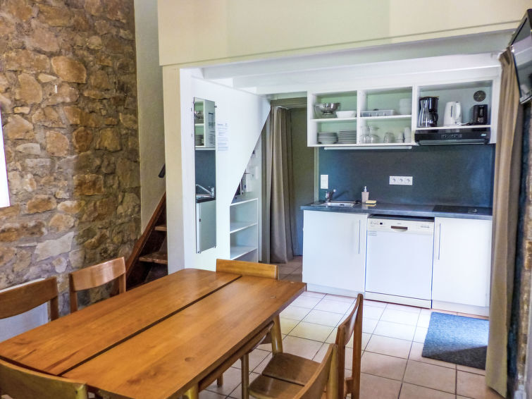 "Les Vans-Cottage 3 pièces 4 personnes", huis in een rij 3-kamers 41 m2 op 2 verdiepingen. Doelmatig en mooi ingericht: woonkamer met TV (Flatscreen TV). Uitgang naar het terras. 1 kamer met 1 x 2 stapelbedden (80 cm, lengte 190 cm). Kookhoek (afwasmachine, 4 keramische glas kookplaten, broodrooster, waterkoker, magnetron, diepvriezer, elektrische koffiemachine). Douche, aparte WC. Bovenverdieping: 1 open kamer met afgeschuinde daken met 1 2-pers bed (160 cm, lengte 200 cm). Elektrische verwarming. Terras. Terrasmeubelen. Ter beschikking: kinderstoel, kinderbed (extra). Maximaal 2 huisdieren/honden toegestaan. Rookmelders.