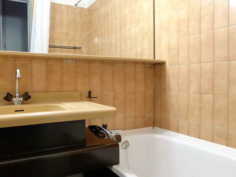 Appartement 2-kamers 28 m2 op de 2e verdieping. Eetkamer met 2 bedden (80 cm, lengte 190 cm), TV. Uitgang naar het balkon. Slaapnis met 1 2-pers bed (140 cm, lengte 190 cm). Kookhoek (4-pits kookplaat, afwasmachine, waterkoker, magnetron, elektrische koffiemachine). Badkamer, aparte WC. Elektrische verwarming. Klein balkon, op het zuiden gelegen. Mooi uitzicht op de bergen. Ter beschikking: Internet (WiFi, extra). Geen parkeerplaats. TV alleen FR. Rookmelders. In plaats van een afgesloten slaapkamer bevinden sommige slaapgedeeltes zich in een open ruimte (galerij, nis, etc.). 74056000620QV