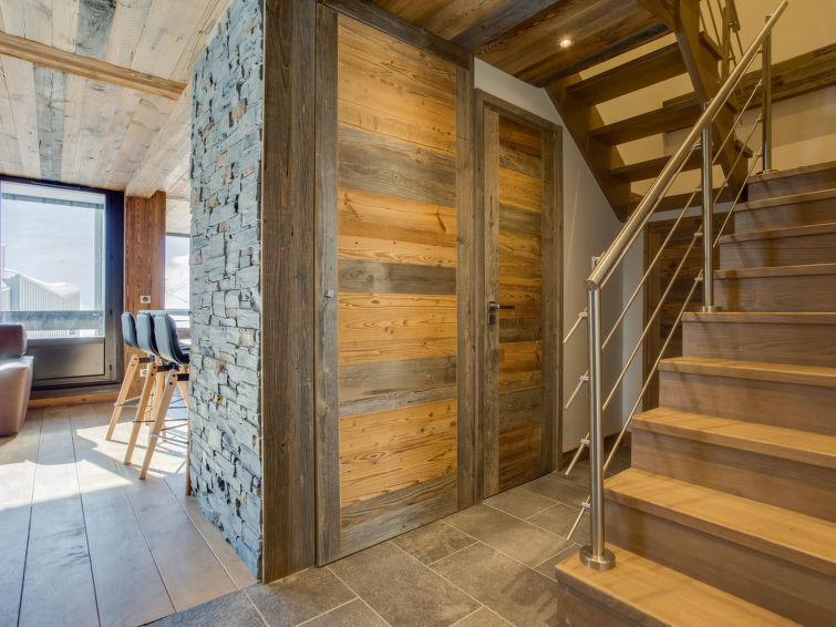 "Platières", maisonette 6-kamers 120 m2 op de 6e verdieping. Ruim, volledig gerenoveerd, luxueus en met veel hout ingericht: salon met TV en Digitale TV (Flatscreen TV). Uitgang naar het terras, op het zuidwesten. Eetkamer. 1 kamer met 2 bedden (80 cm, lengte 200 cm), douche. Open keuken (oven, afwasmachine, 4 inductiekookplaten, magnetron, diepvriezer, elektrische koffiemachine, pads voor de koffiemachine (NESPRESSO) extra, raclette oven) met bar. Aparte WC. Bovenverdieping: 1 groot kamer met 1 2-pers bed (160 cm, lengte 200 cm), douche en dubbele wastafels. Uitgang naar het balkon, op het zuiden. 1 kamer met 2 bedden (80 cm, lengte 200 cm), douche. 1 kamer met 2 bedden (80 cm, lengte 200 cm). 1 kamer met 1 bed (80 cm, lengte 200 cm), 1 x 2 stapelbedden (80 cm, lengte 190 cm). Badkamer, aparte WC. Uitzicht op de bergen. Ter beschikking: wasmachine, droger, strijkijzer. Internet (Internet (WiFi), gratis). Parkeerplaats nr. 9 (overdekt), hoogte 185 cm. Niet rokers woning. Rookmelders.
