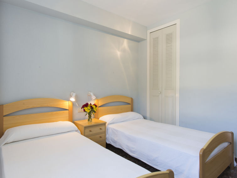 Appartement 4-kamers 100 m2 op de 4e verdieping. Ruim en licht, comfortabel ingericht: woon-/eetkamer met eettafel, Digitale TV en Flatscreen TV. Uitgang naar het terras. 1 kamer met 1 2-pers bed (135 cm, lengte 190 cm), bad/bidet/WC en ventilator. Uitgang naar het terras. 1 kamer met 2 bedden (90 cm, lengte 190 cm). 1 kamer met 1 2-pers bed (135 cm, lengte 190 cm). Keuken (oven, 4 keramische glas kookplaten, broodrooster, waterkoker, magnetron, diepvriezer, elektrische koffiemachine). Uitgang naar het balkon. Douche/bidet/WC. Elektrische verwarming. Verwarming niet in alle ruimtes. Klein balkon, groot terras. Terrasmeubelen. Uitzicht op zee, het zwembad en de plaats. Ter beschikking: wasmachine, strijkijzer, kinderstoel, kinderbed tot 2 jaar, haardroger. Parkeerplaats bij het huis. Geschikt voor families. Niet rokers woning. VT-49962-V // Reg. Nr.: ESFCTU000046037000424415000000000000000000VT-49962-V8